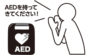 近くに人がいる場合は119番通報をお願いする。