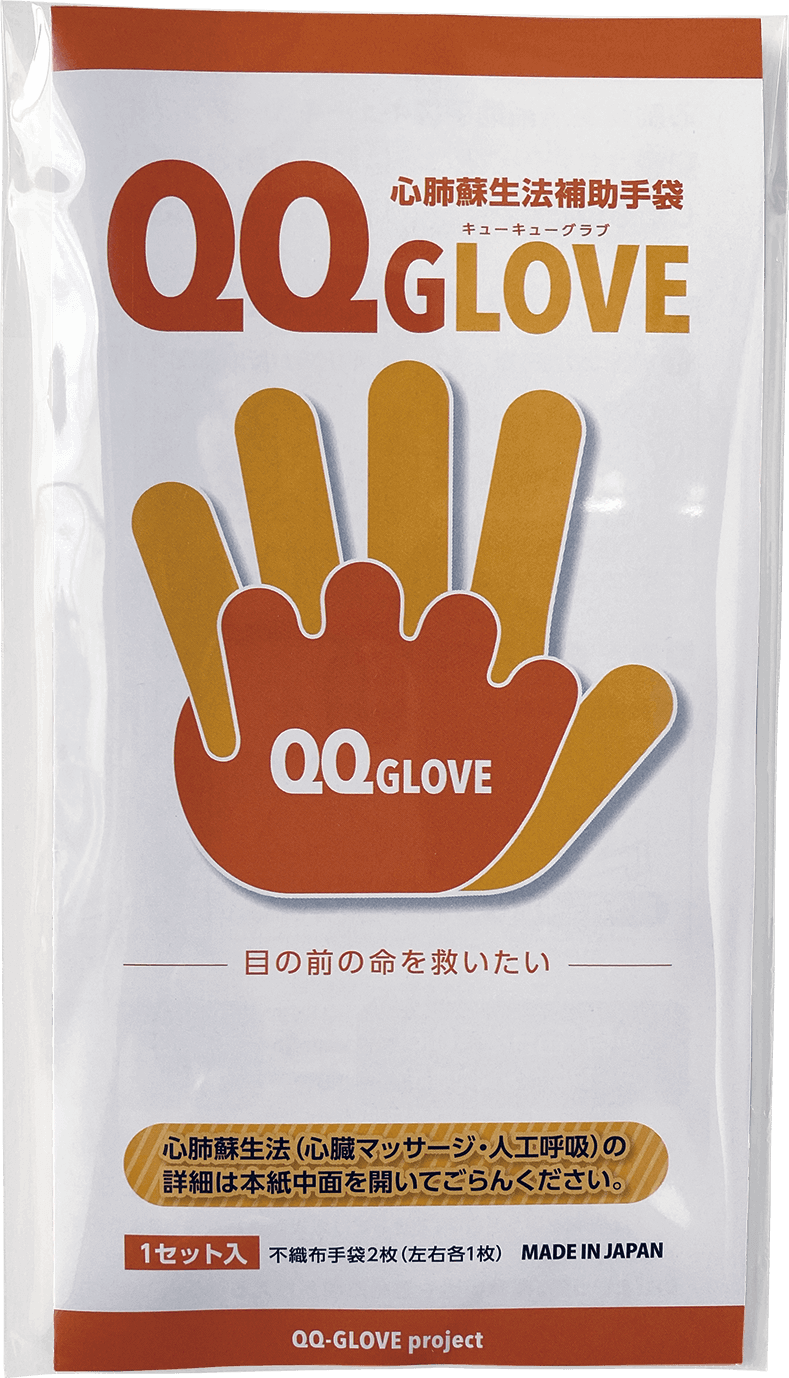 心肺蘇生法補助手袋QQGLOVEは大切な命をを救う「勇気の後押し」になりたいと願っています。