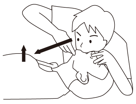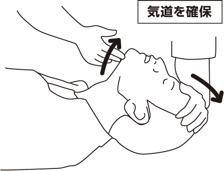 片手で額を押さえながら、反対の手の指先であごを持ち上げ気道を確保します。
